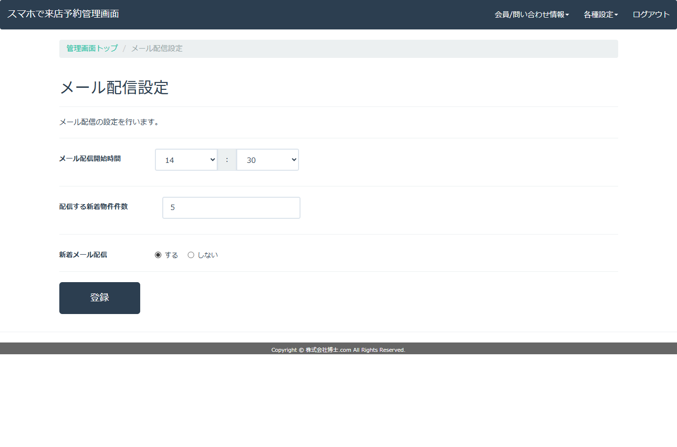 | 電話番号の必須 | 来店予約フォームでの電話番号必須設定 |